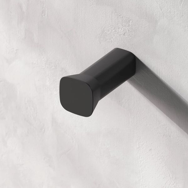 для ценителей функционального использования пространства ванной комнаты создан крючок для полотенца элегантной формы, который также можно использовать как крючок для халата.