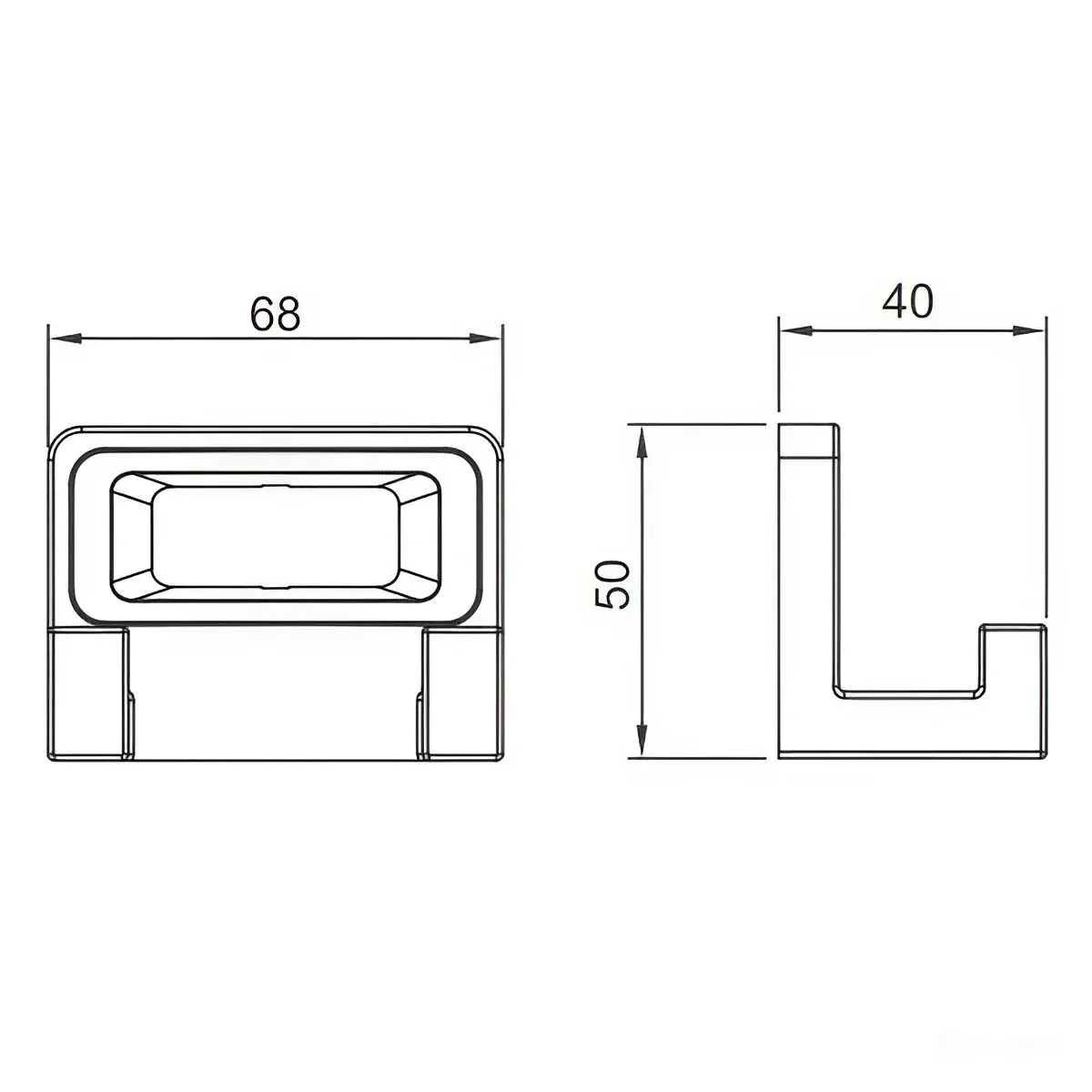 Крючок имеет компактные размеры (высота 5.0 см, ширина 6.8 см, длина 5.0 см), что позволяет разместить его даже в небольшом пространстве. Крепление осуществляется с помощью саморезов, что обеспечивает надежное и прочное соединение.