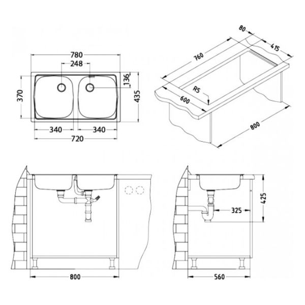 Кухонная мойка Alveus 1049434 Basic 160 Lei-90 78x43.5 Lux