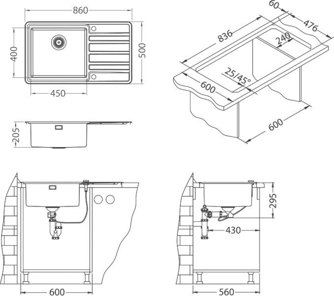 Кухонная мойка Alveus Rando 1131207 L 86х50 смАртикул