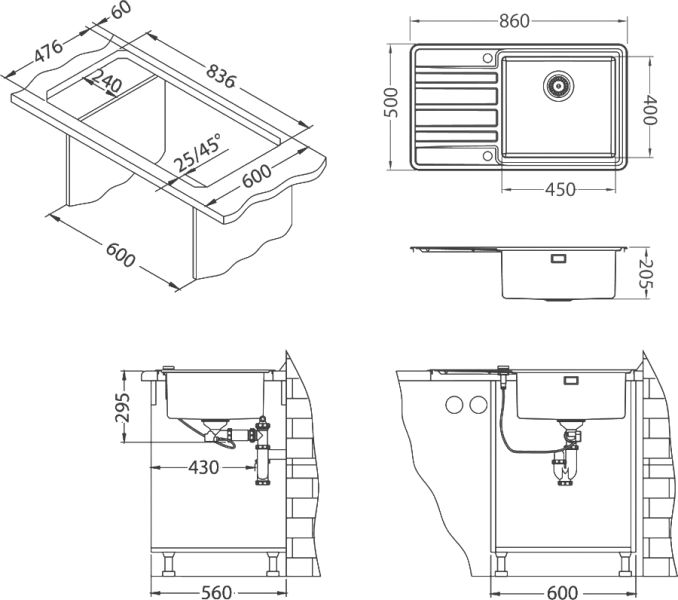 Кухонная мойка Alveus Rando 1131208 R 86х50 смАртикул