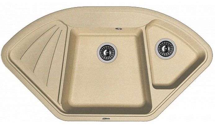Угловая врезная мойка с двумя чашами для кухни Florentina Капри изготовлена из композитного материала.