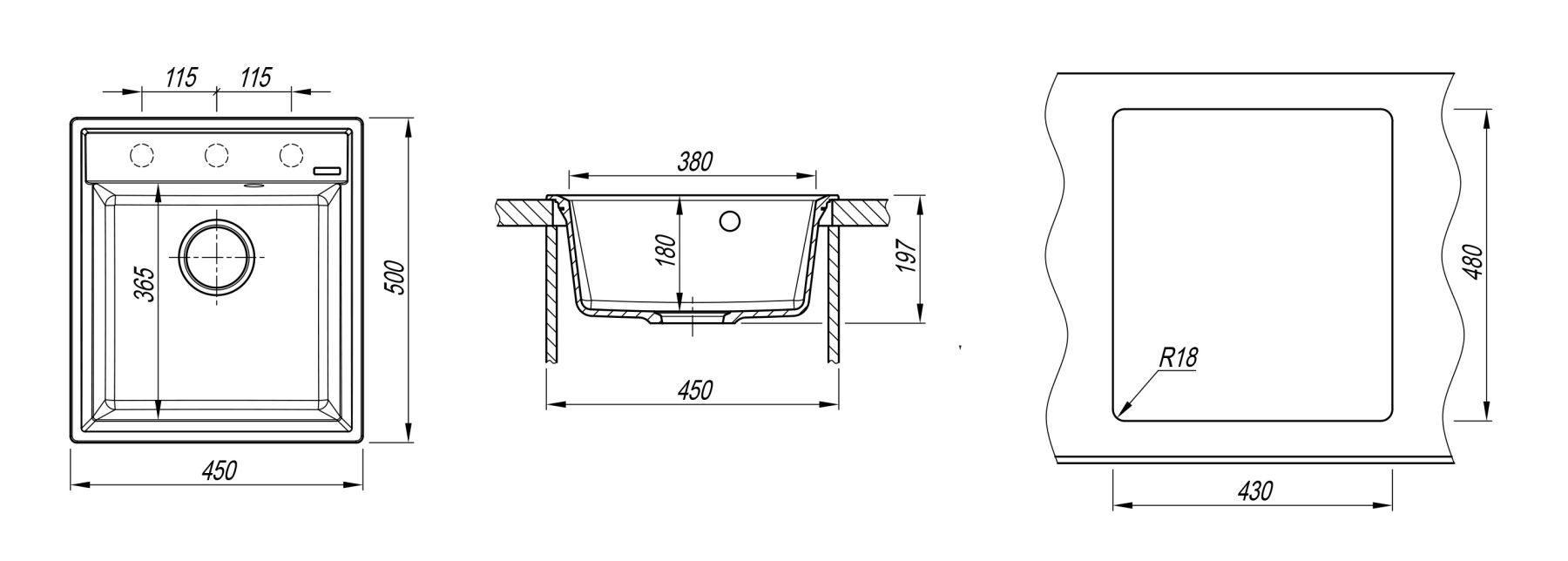 • Отверстия под смеситель: