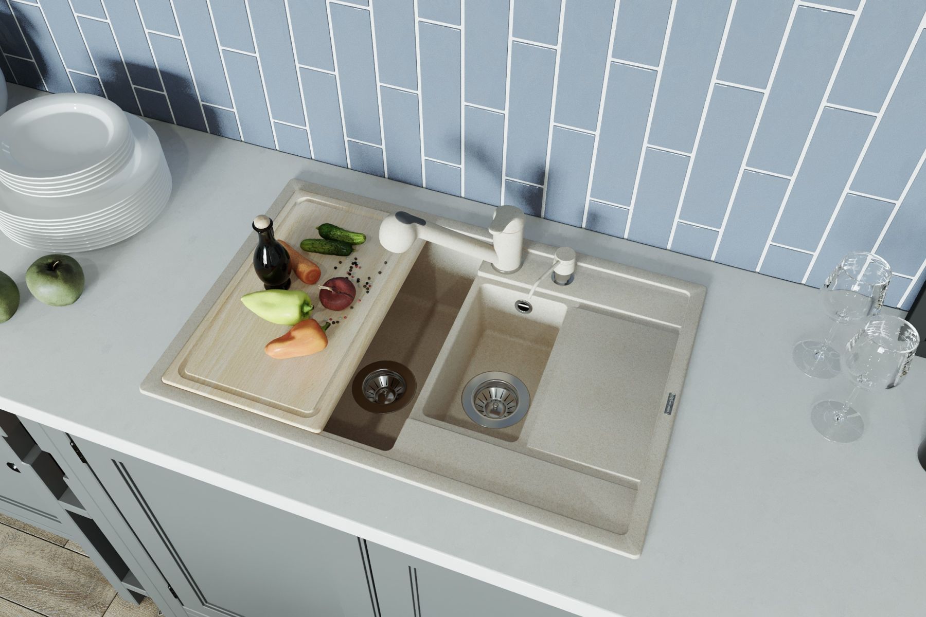 • Практичная мойка с дополнительной малой чашей;