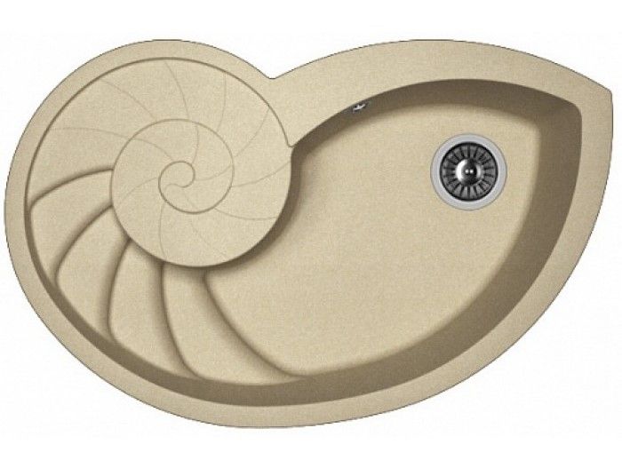 Необычная кухонная мойка, напоминающая форму раковины Наутилус