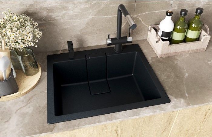 Вместительная врезная мойка для кухни Флорентина модель Ривьера 600 выполнена из камня.