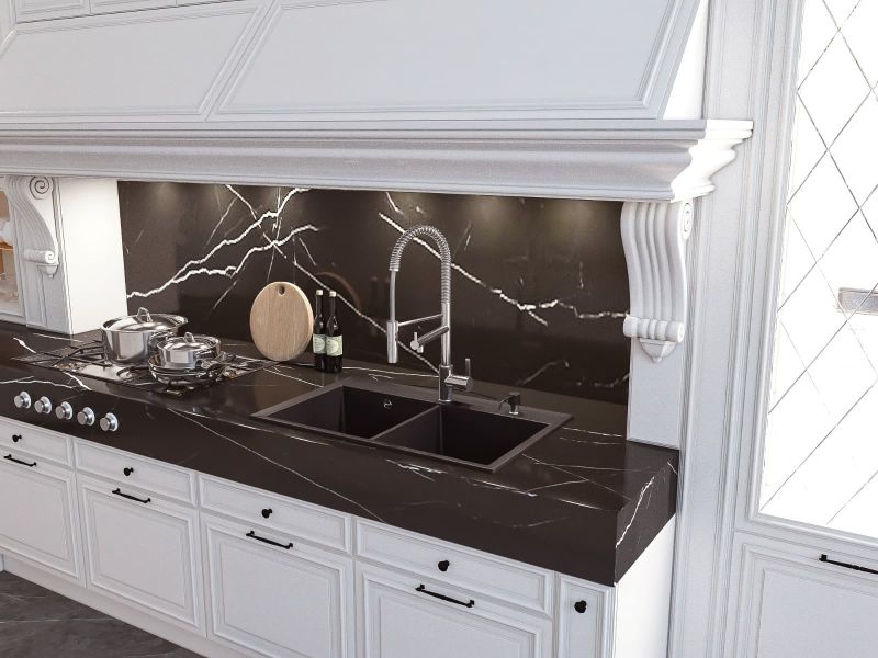 • Прямоугольная мойка с двумя большими чашами для кухонного шкафа 80 см