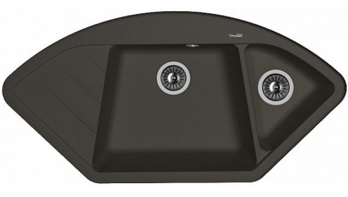 Угловая мойка классической формы с двумя чашами для кухни Florentina Веста изготовлена из композитного материала.