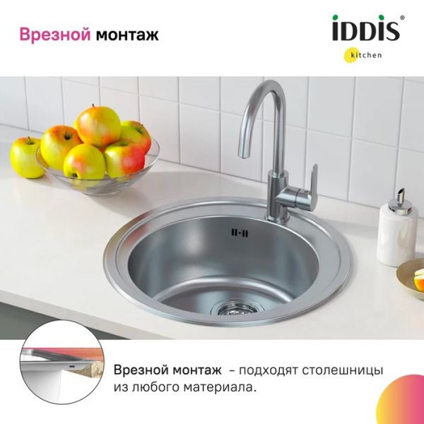 Кухонная мойка IDDIS Suno SUN50S0i77S с сифоном 50см сталь купить