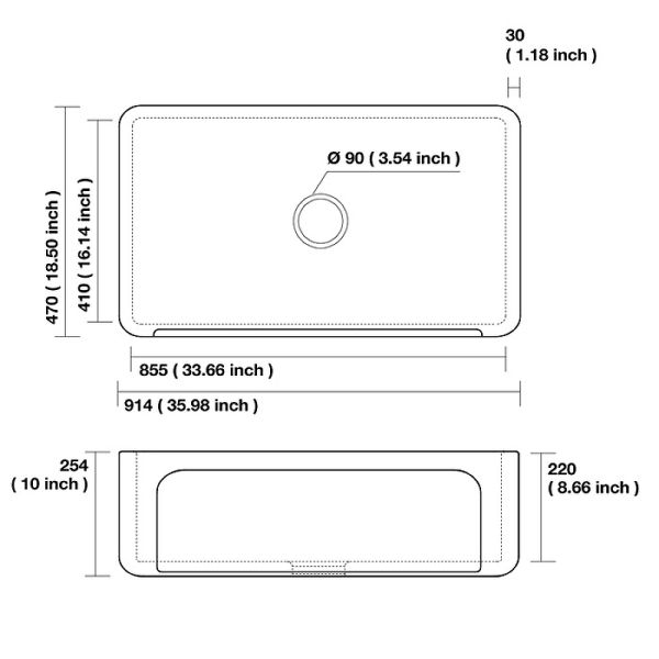 Размер (ШхВхГ): 91.4x25.4x47 см.