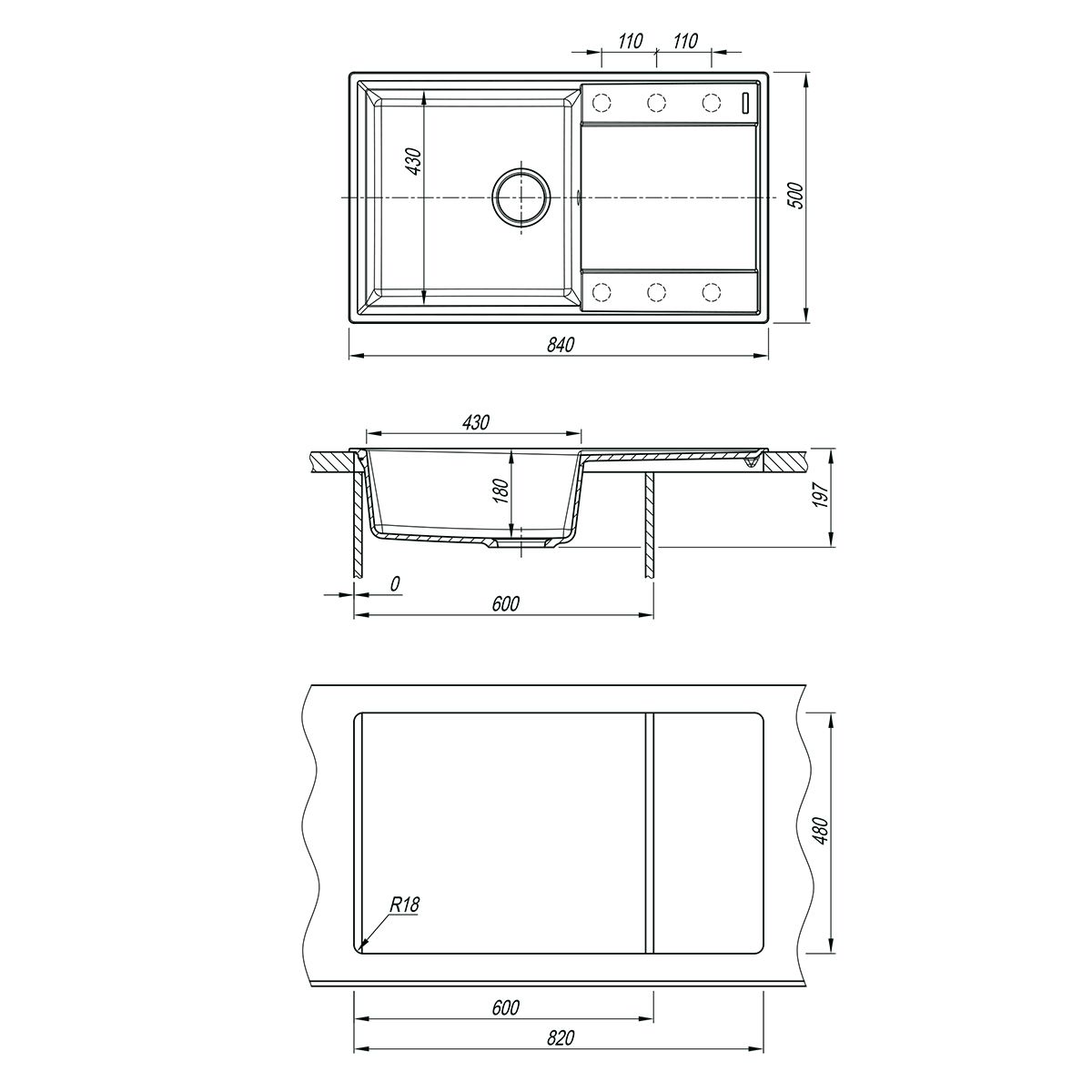 Модель представлена в 6 трендовых цветах: антрацит, грей, шампань, серый шёлк, жасмин, бежевый, что дает возможность подобрать мойку в общей стилистике кухни.