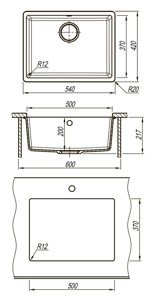 Кухонная мойка Lemark Sinara 540-U 9910073 антрацит