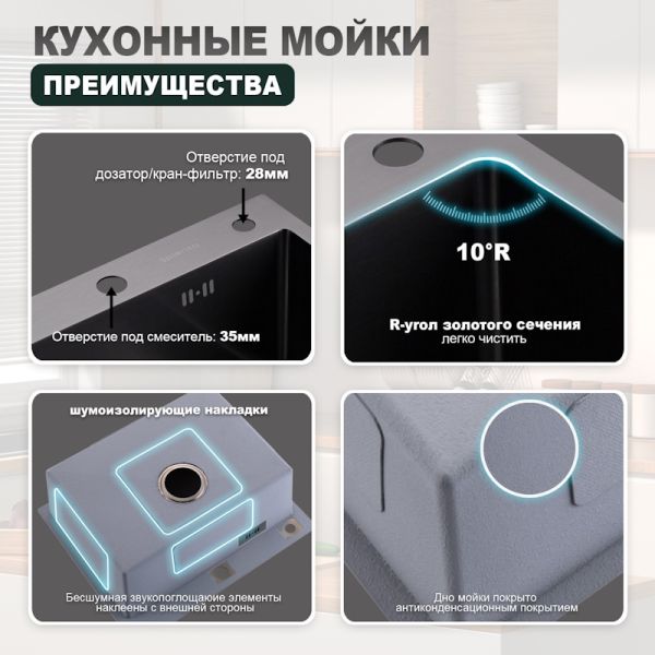 Кухонная мойка Splenka S702.6050.09, графит
