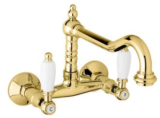 Кухонный смеситель настенного монтажа, золото Cezares FIRST-LLP-03/24-Bi