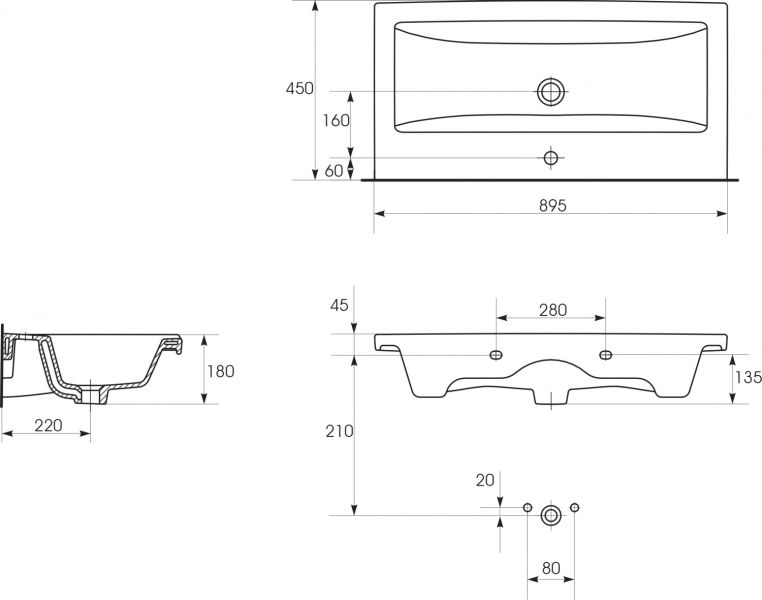 Мебельная раковина Cersanit Como 90см белый 5902115715303