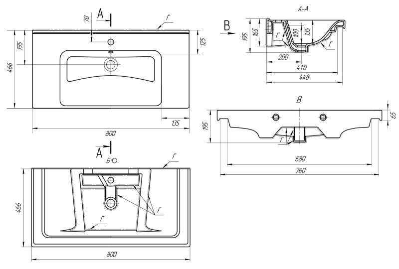 Мебельная раковина Dreja Гармония 80см белый 00000006554