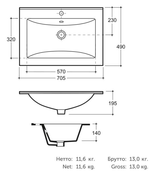 Мебельная раковина Керамин Бергамо Нова CDB00018485 70см белый купить