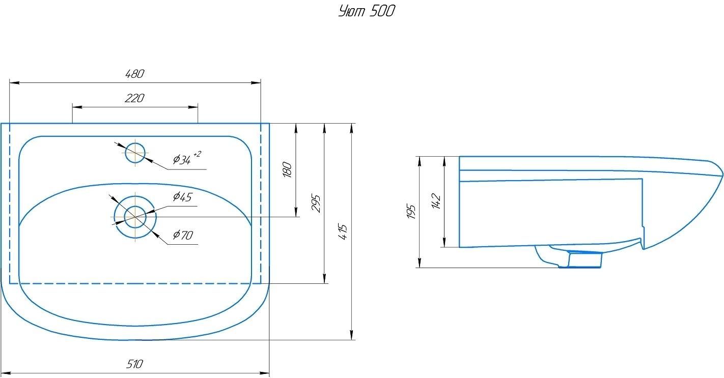Раковина ROSA УЮТ 50 изготовлена из 100% санитарного фарфора и оптимально подходит для оборудования ванной комнаты стандартного размера.