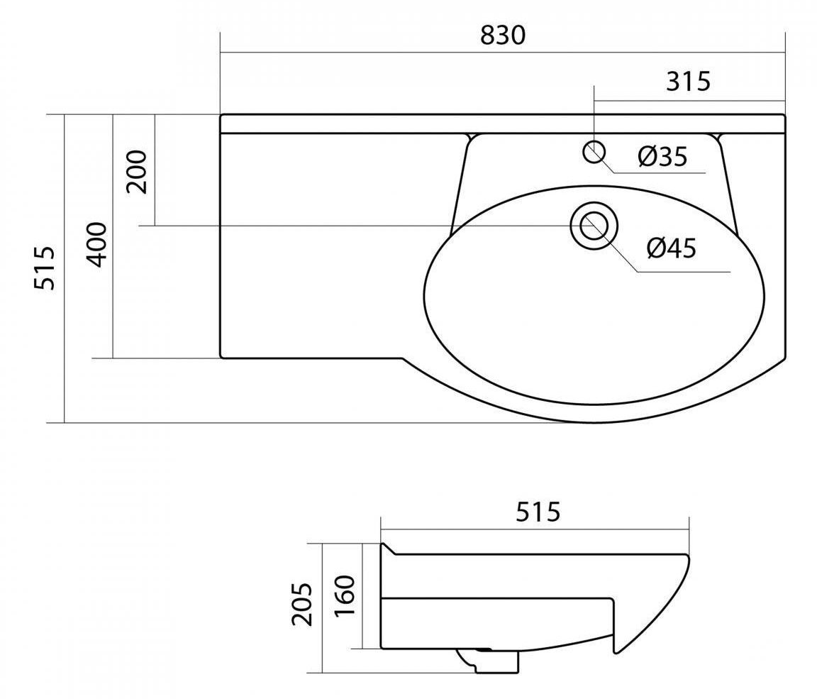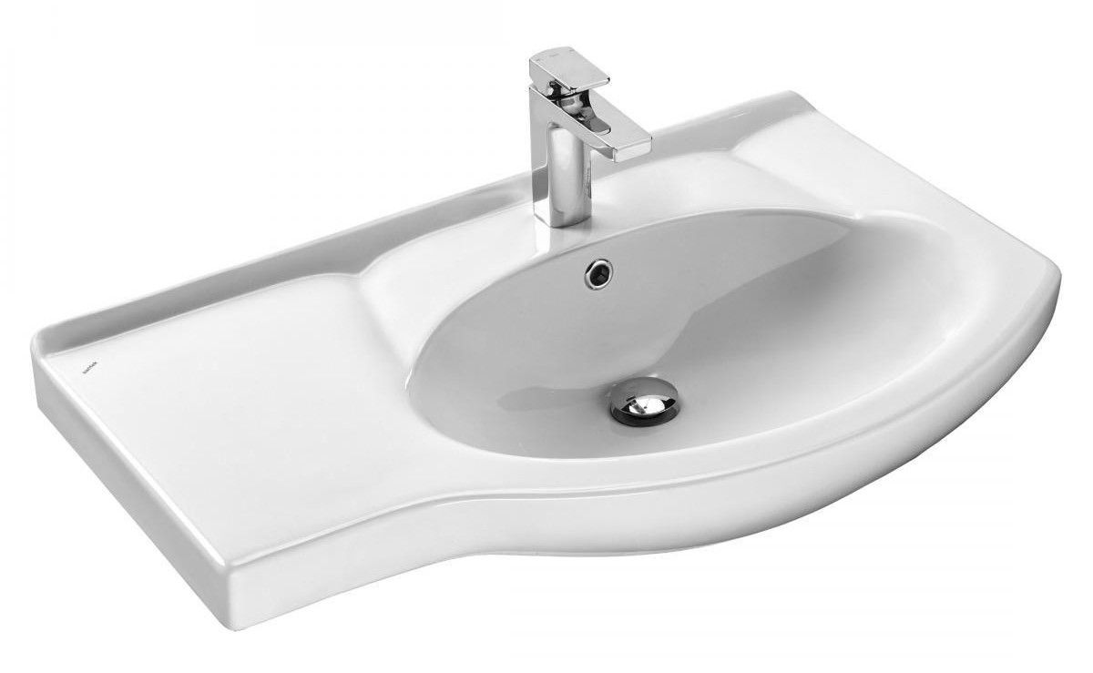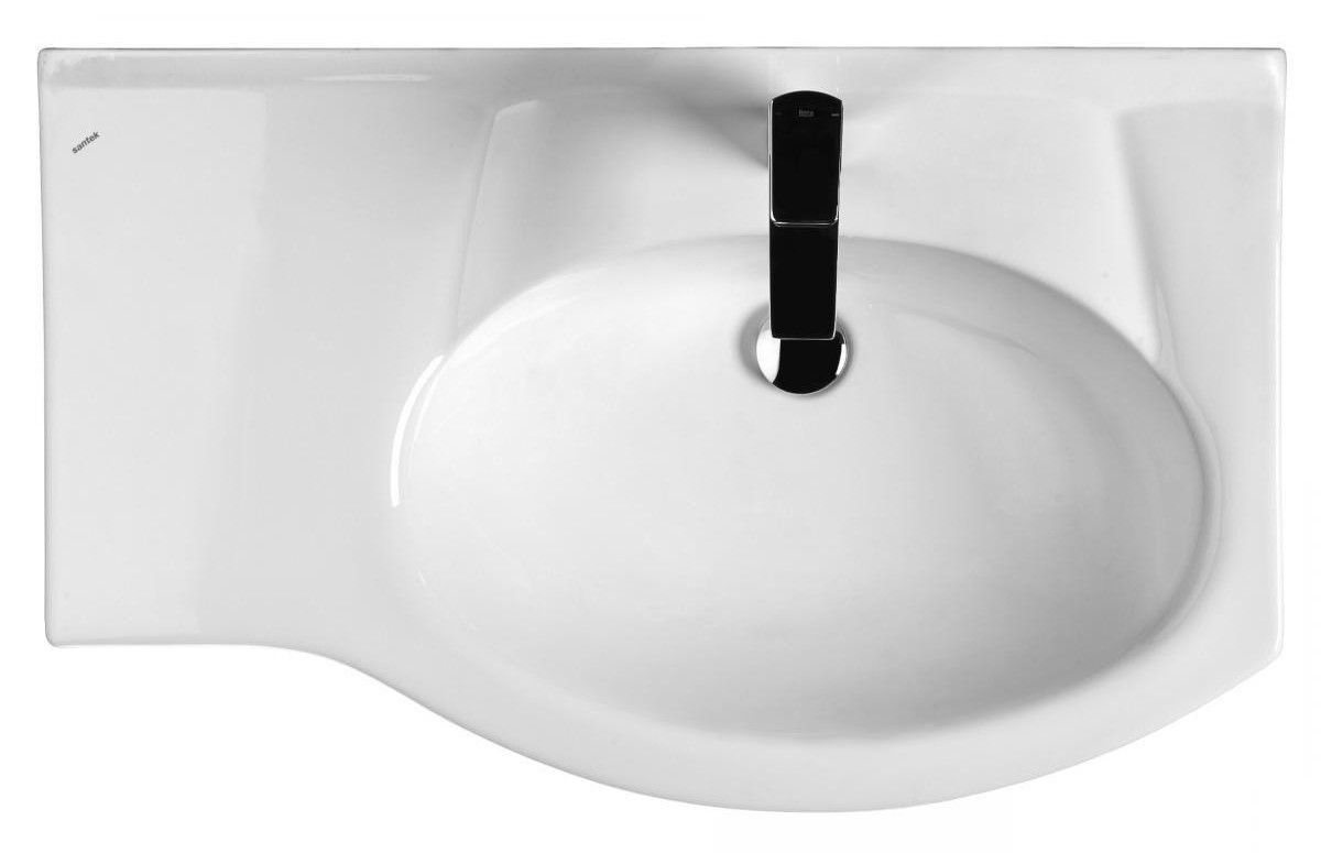 Керамическая раковина Santek КОРАЛЛ 82 отличается нестандартной формой с крылом, сверкающей белизной, высоким качеством исполнения, практичностью и функциональностью. Крыло слева обеспечивает больше места для размещения необходимых мелочей, а встраиваемая в мебельную тумбу конструкция создает дополнительное пространство для хранения.