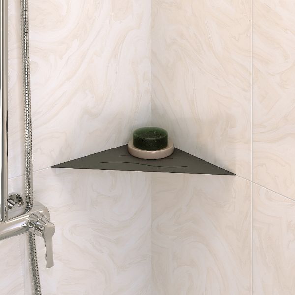 Металлическая полка RGW MT-02B 49279902-04 угловая ЧернаяПолка для душевой зоны RGW MT - современное решение для душевого пространства. Изготовлены из нержавеющей стали AISI 304, прочные, не ржавеют. Форма и размер полки, позволяет достичь максимальной стабильности конструкции и достаточной вместительности душевых принадлежностей, а легкая и быстрая установка в межплиточные швы без сверления плитки выгодно выделяет данное решение. Легкий монтаж без сверления плитки: Полки для душевой зоны, разработанные специально для монтажа после завершения ремонта, т. е. укладки плитки. Легко устанавливаются в любые угловые зоны в помещении, для этого прорезается шов между плитками, далее полочка вклеивается между плиткой на любой бытовой герметик. Полочки для душевой зоны RGW MT идеально подойдут для установки в душевое пространство, или в любую комнату, а так же найдут применение, на кухнях или в других помещениях.