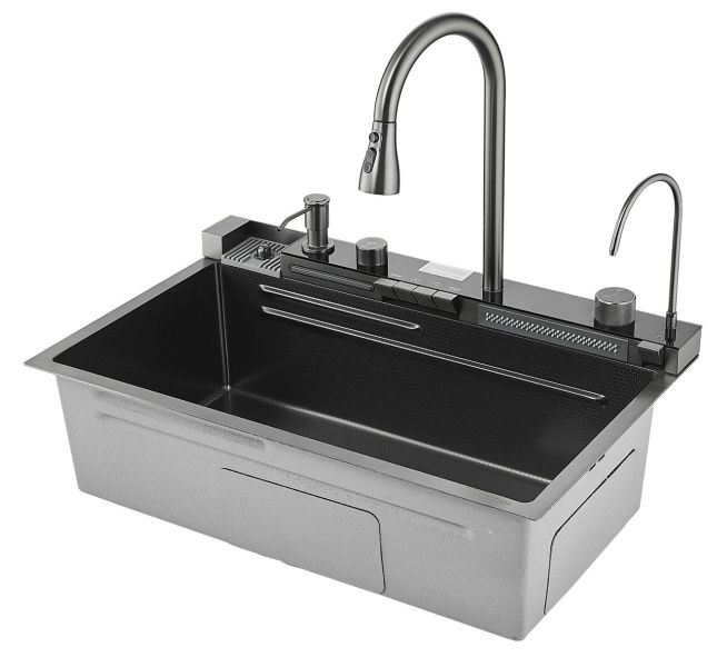 Многофункциональная кухонная мойка Savol S-SC001Q с водопадом 75см графит купить