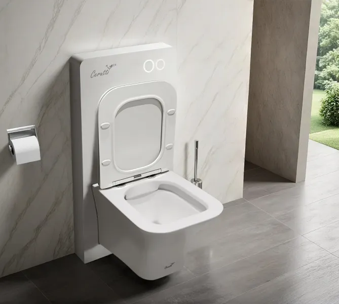 Модуль-инсталляция приставная для подвесных унитазов Ceruttispa G111W из белого стекла купить