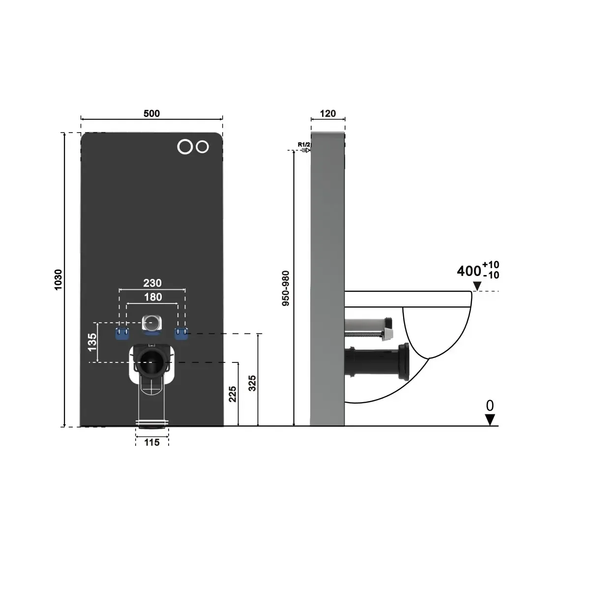 - Монтажная высота: 1030 мм