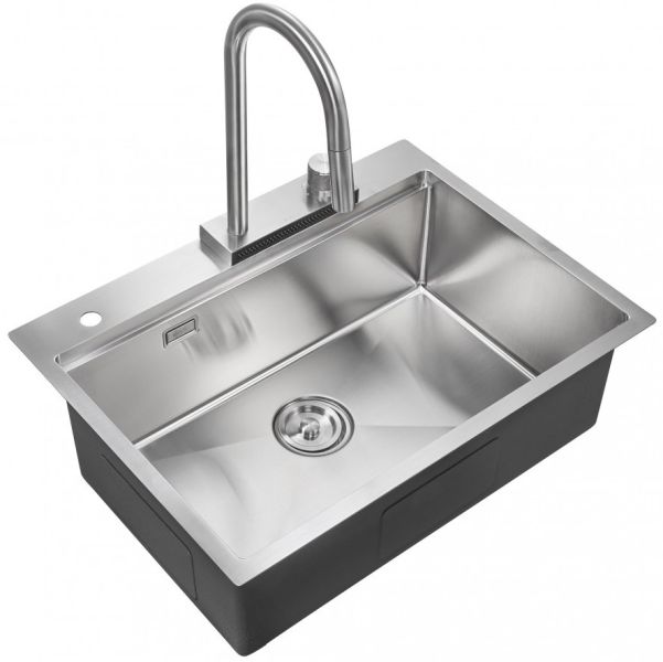 Мойка для кухни Milacio Denia 68 Steel MC.77410 в комплекте со смесителем и коландером нержавеющая сталь купить