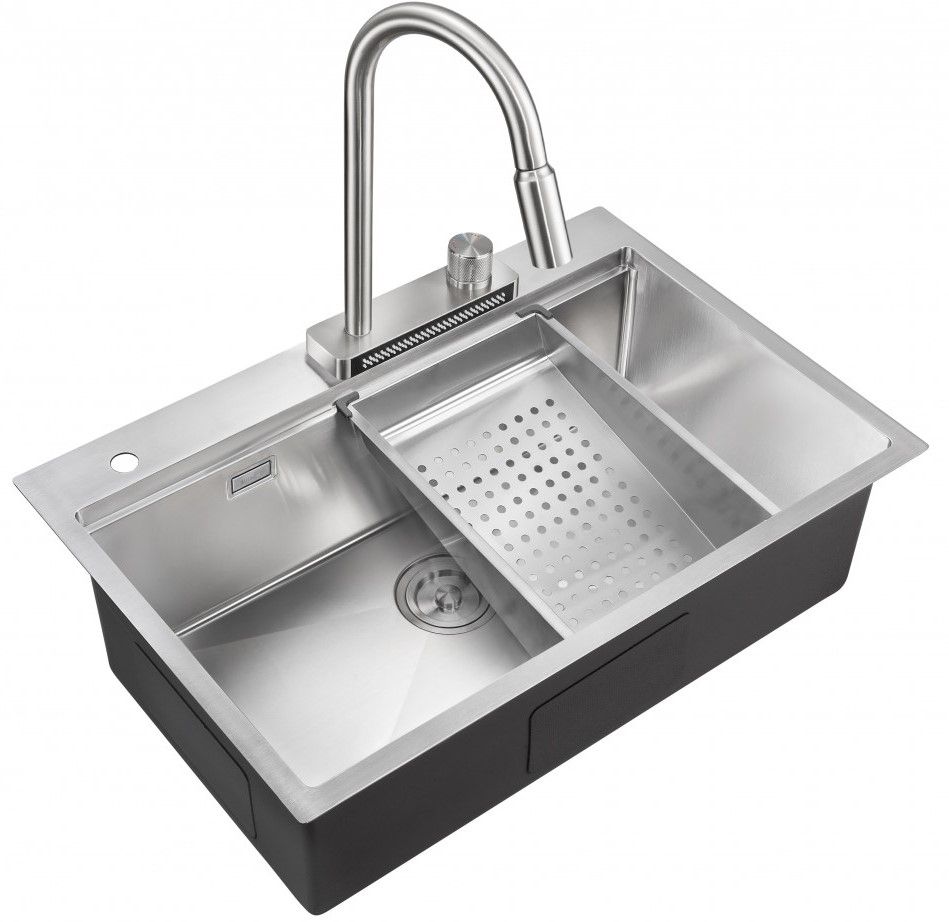 Мойка для кухни Milacio Denia 75 Steel MC.77420 в комплекте со смесителем и коландером нержавеющая сталь купить