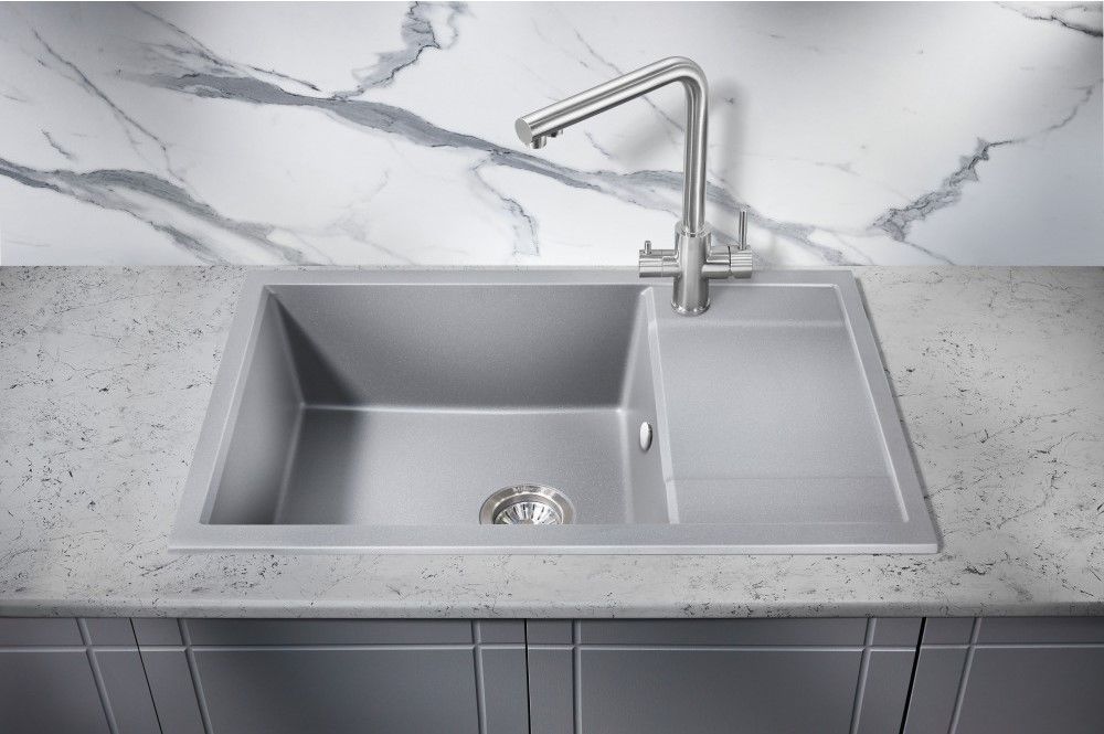 Большая врезная прямоугольная мойка для кухни из искусственного камня MILACIO Navarra 78 Cuarzo (MC.77053) в цвете «серый металлик» с матовой текстурой — лучшее решение, выполняющее как эстетические, так и практические функции.
