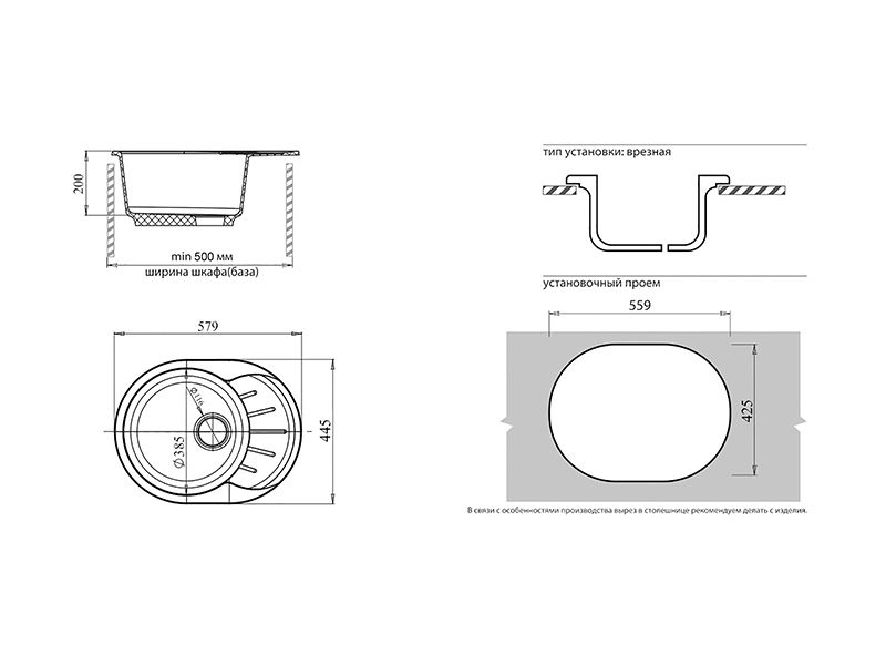 Мойка кухонная GranFest Чёрная Rondo R-580 L чер купить