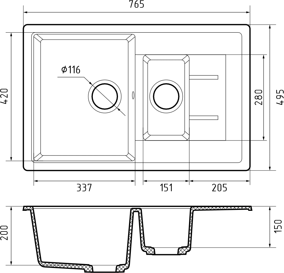 Мойка кухонная GranFest CLASSIC Q-775KL графит купить