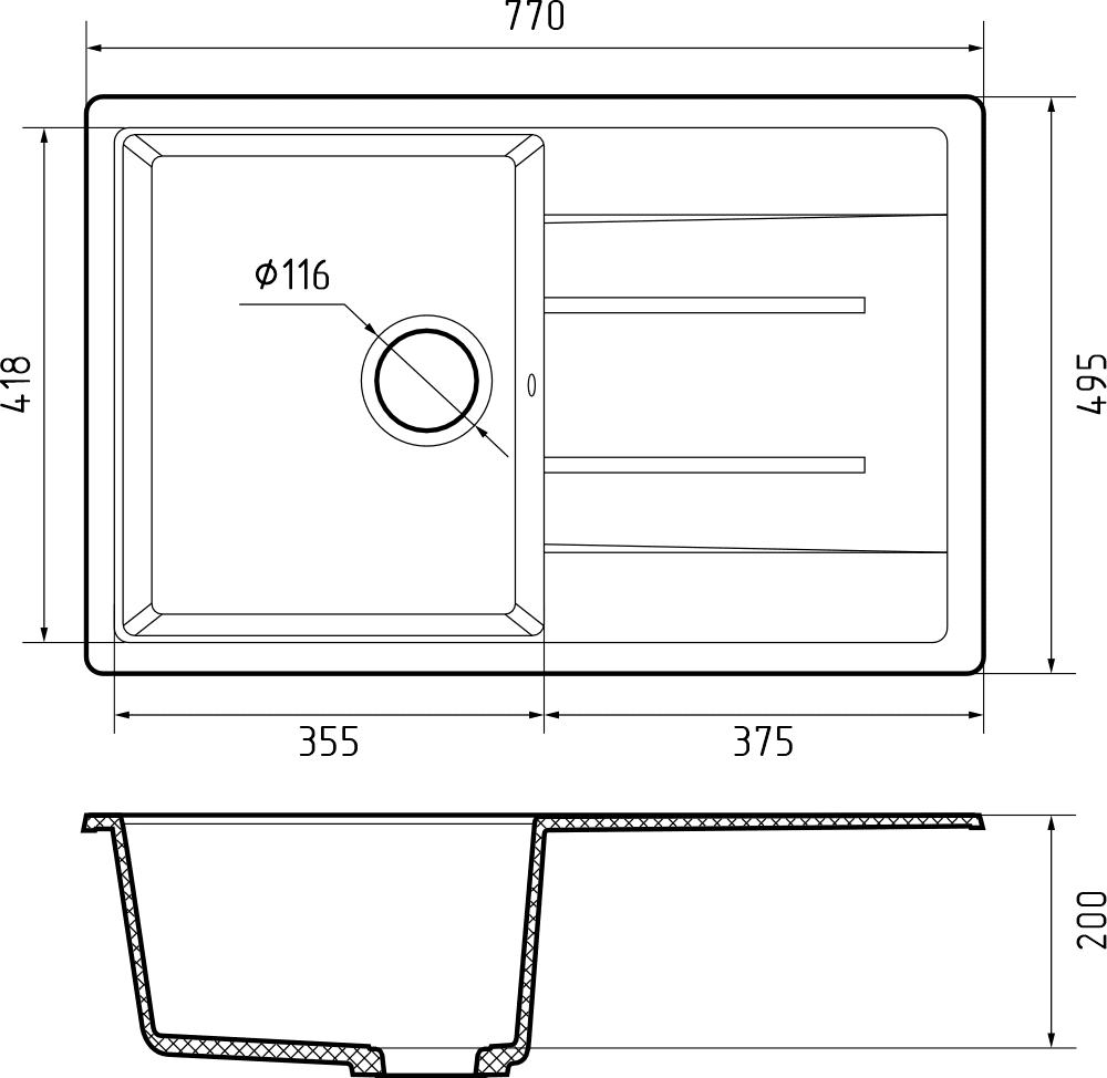 Общий размер: 770 * 495 мм