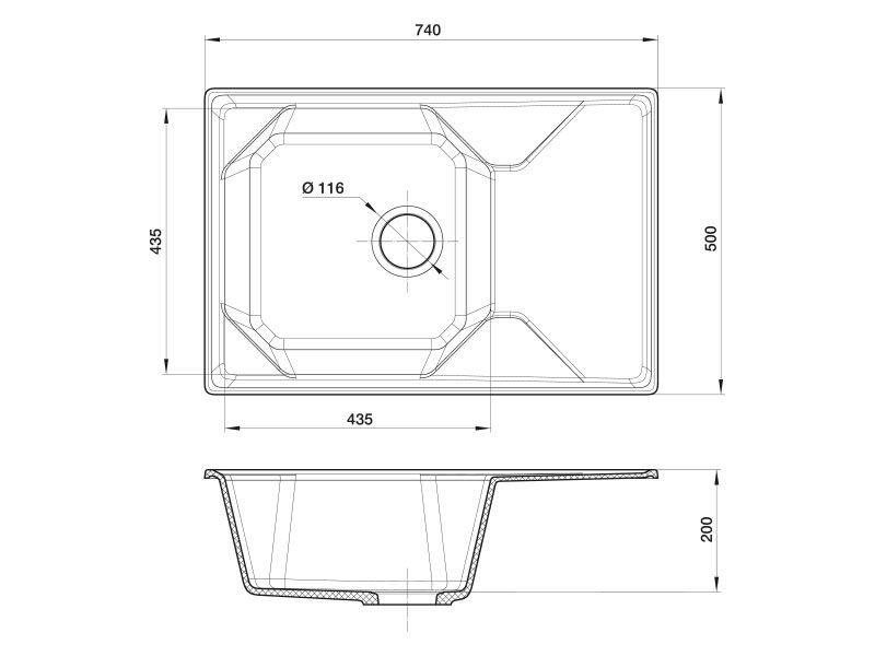 Мойка кухонная GranFest Иней Unique U-740L иней