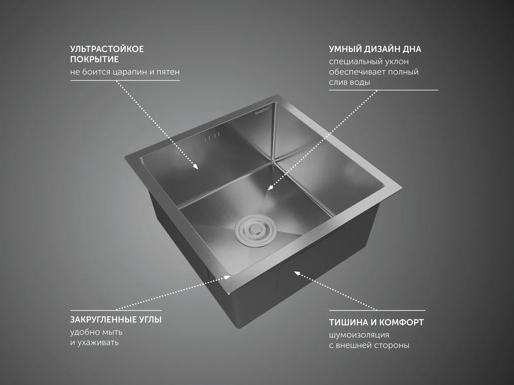 Мойка кухонная GranFest METAL 4444 нерж Нержавеющая сталь Подробнее