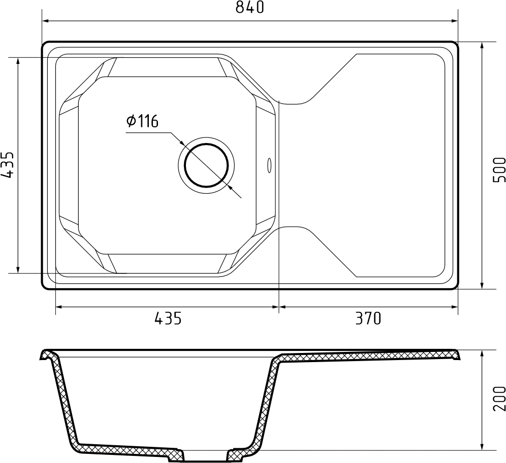 Мойка кухонная GranFest UNIQUE U-840L черный