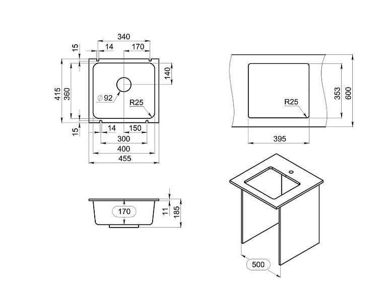• Отверстия под смеситель: