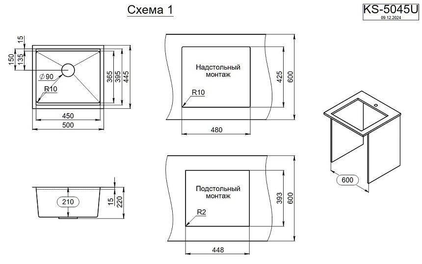 Мойка кухонная Granula 5045U, ЧЕРНЫЙ МАТОВЫЙ