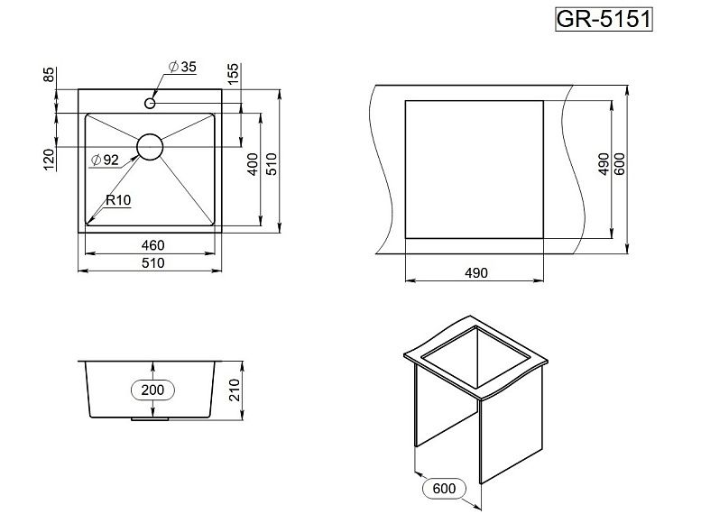 Мойка кухонная Granula 5151, ГРАФИТ МАТОВЫЙ Подробнее