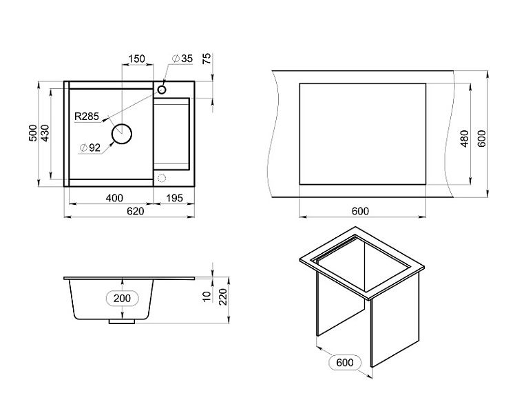 Мойка кухонная Granula 6202, ГРАФИТ