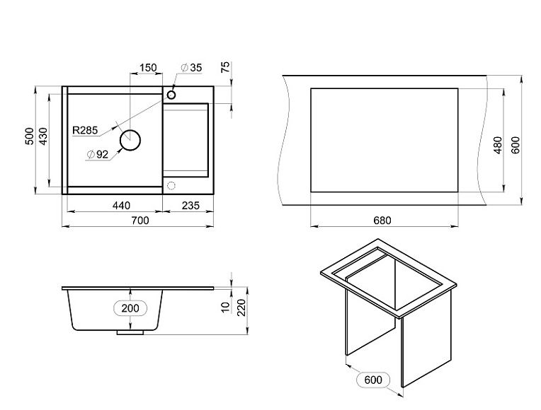 Сифон с отводом для бытовой техники, разделочная доска (ясень)