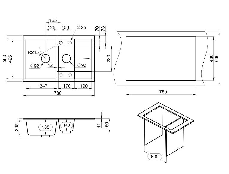Мойка кухонная Granula 7802, ТУРМАЛИН