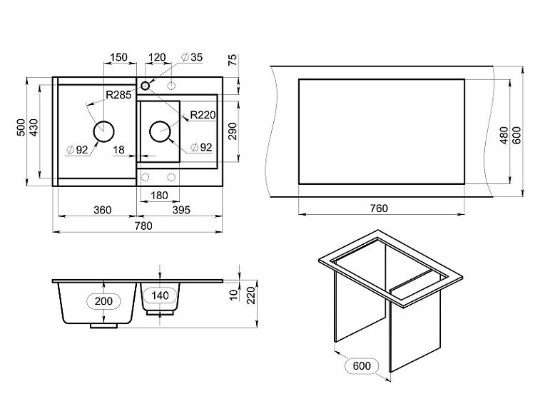 Мойка кухонная Granula 7808, ШВАРЦ Подробнее