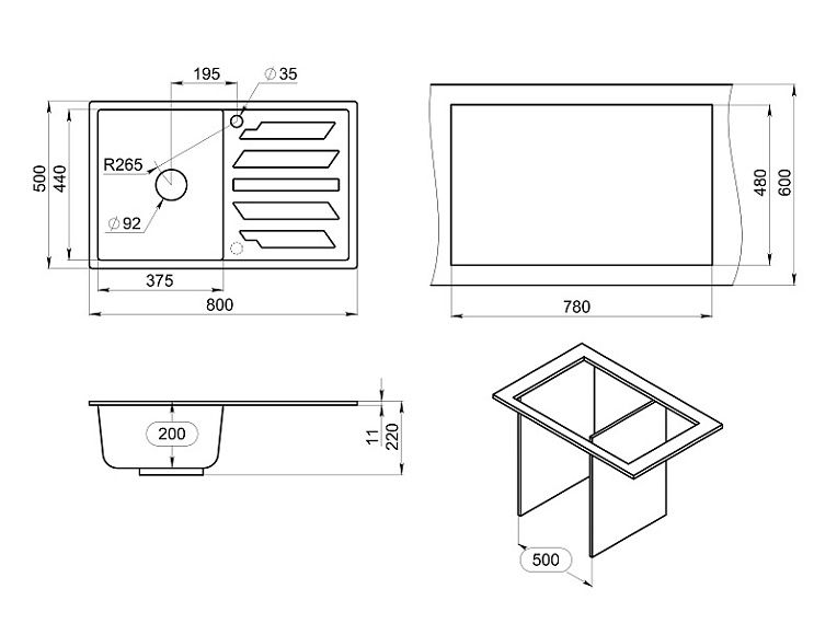 Мойка кухонная Granula 8002, БАЗАЛЬТ Подробнее