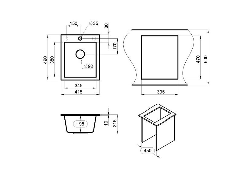 Мойка кухонная Granula Kitchen Space 4201, БАЗАЛЬТ