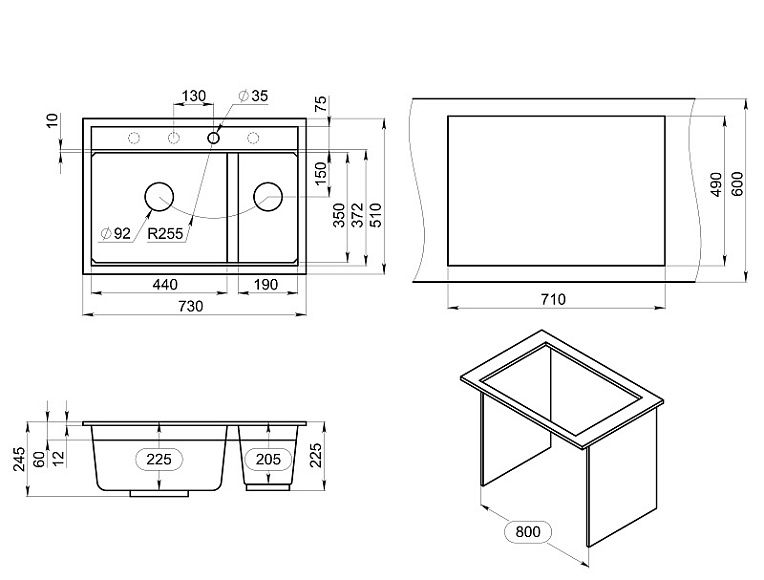 Сифон с отводом для бытовой техники, дозатор для жидкого мыла (нерж) и ролл-мат
