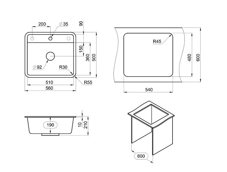 Мойка кухонная Granula Standart 5601, ГРАФИТ Подробнее