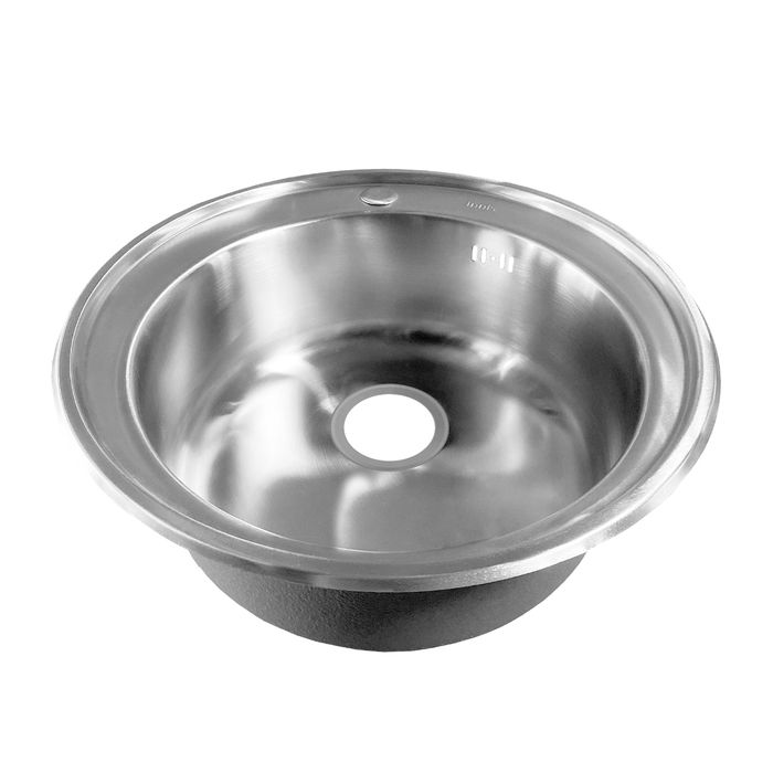 Универсальная круглая стальная мойка Basic с матовой сатиновой поверхностью диаметром 51 см и глубиной 18 см.