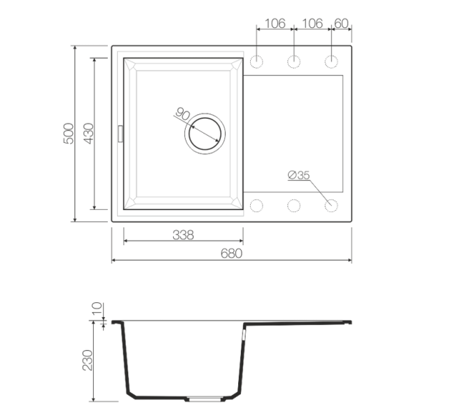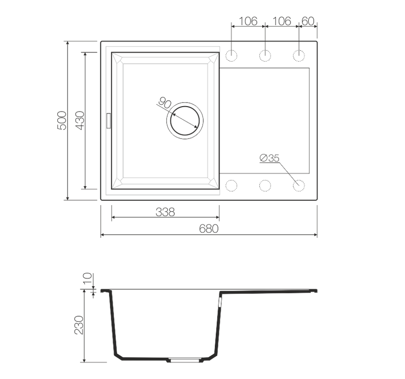 • Отверстия под смеситель: