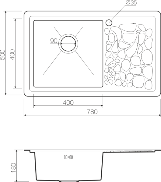 • Отверстия под смеситель: